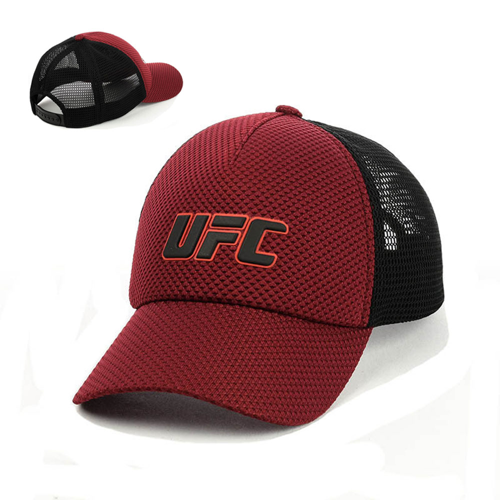 Бейсболка мужская с сеткой, декорирована оригинальным резиновым патчем “UFC”. Размерность бейсболки 56-58 можно менять пластиковой застежкой, и за счет этого вы сможете никак не переживать о размере. Козырек кепки изготовлен с гибкого материала который можно согнуть по собственному желанию и вкусу. Во внутреннюю часть бейсболки по всей окружности вшита  лента впитывающая влагу. В передней части бейсболки был использован особый материал для укрепления формы. Бейсболка с сеткой модель для парней, шагающих в ногу с модой 2019 года.