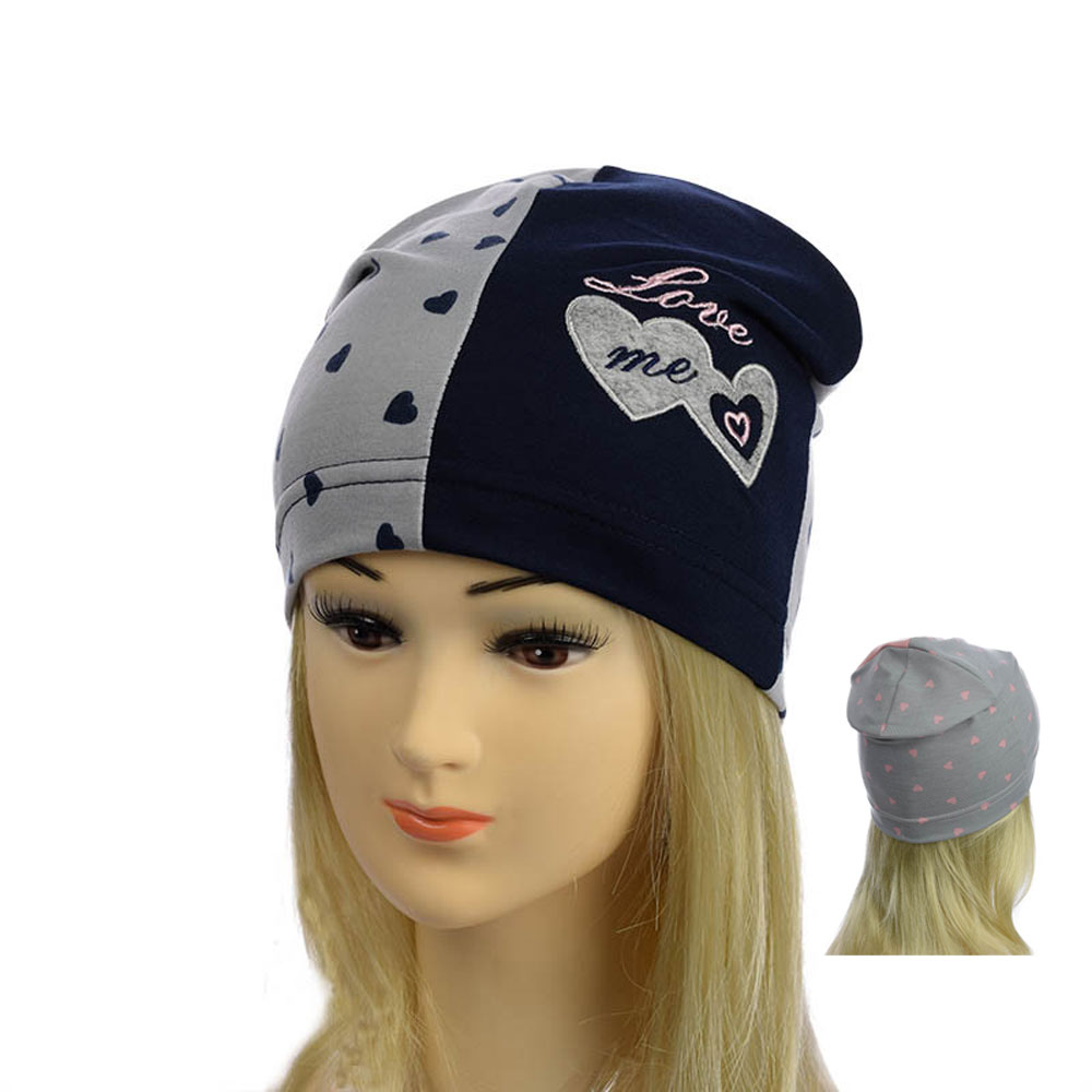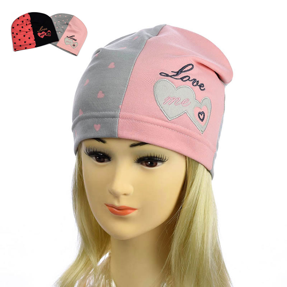 Детская трикотажная тонкая шапка для девочек. Модель шапки украшена вышивкой в виде сердечек и надписью “Love me”, которые всегда будут привлекать внимание окружающих. Престижный и элегантный атрибут этого сезона, для девочек 3-7 лет.