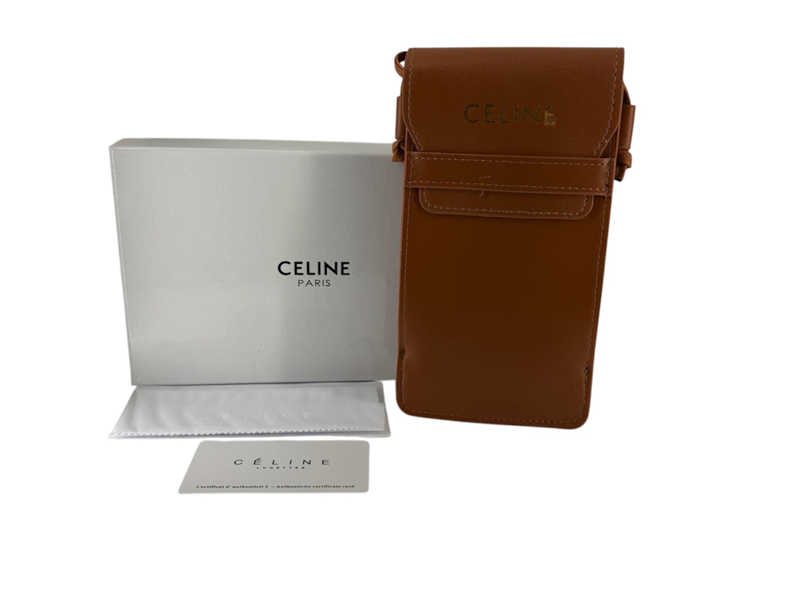 Футляр для очков Celine служит надежной защитой от повреждений, таких как удары, царапины, надломы или трещины. Полужесткий футляр для очков открывается и закрывается внахлест и крепится на ремешке. Материал наружной части футляра обтянут эко кожей на жесткую основу, внутренняя часть это приятный на ощупь искусственный замш. Очки рекомендуем хранить и транспортировать в полужестком футляре. Футляр надежно защитит очки от падений и повреждений. Преимуществом этой модели является компактность. Чехол в сложенном положении достаточно тонкий, и занимает не так много места, идеально как в женской, так и в мужской сумке.