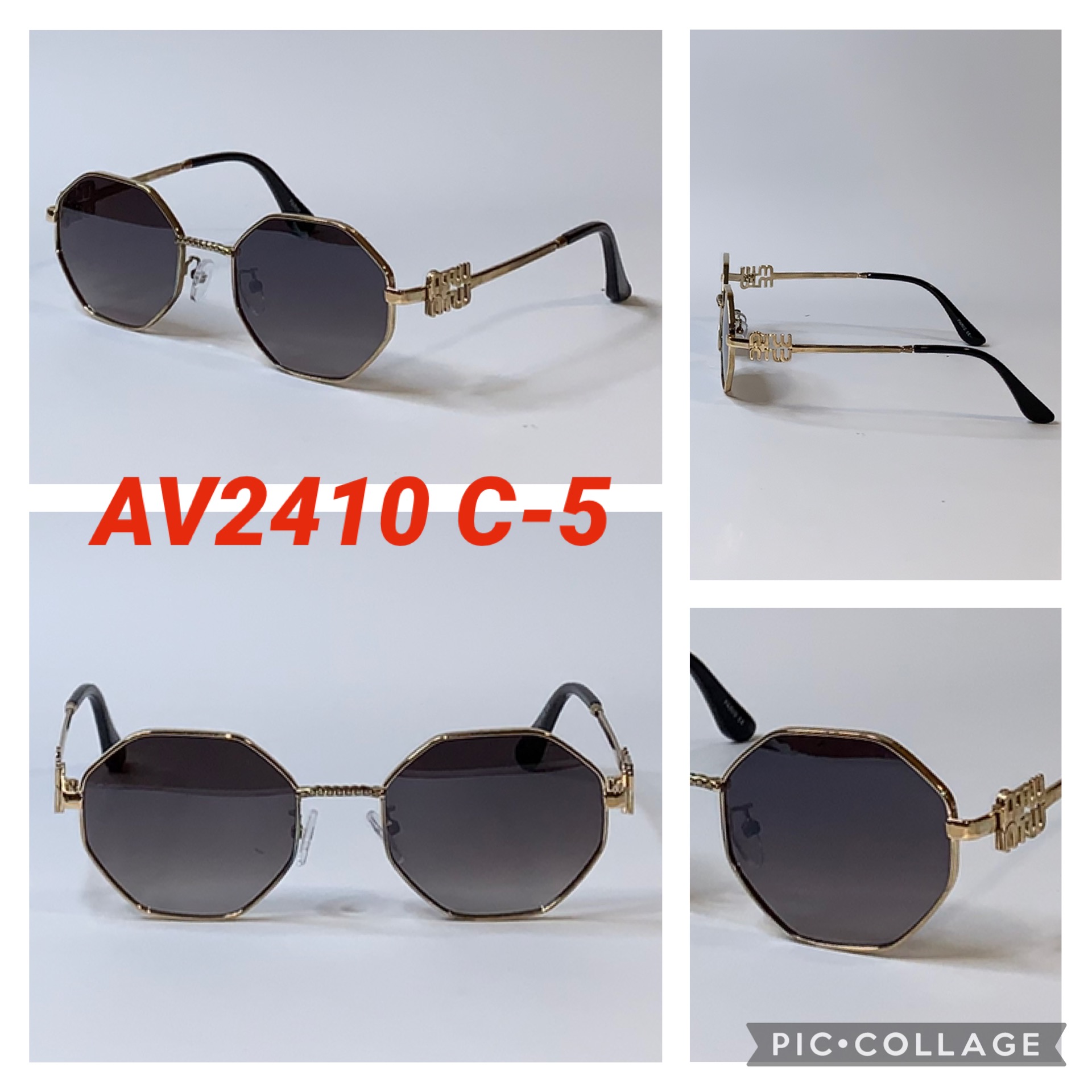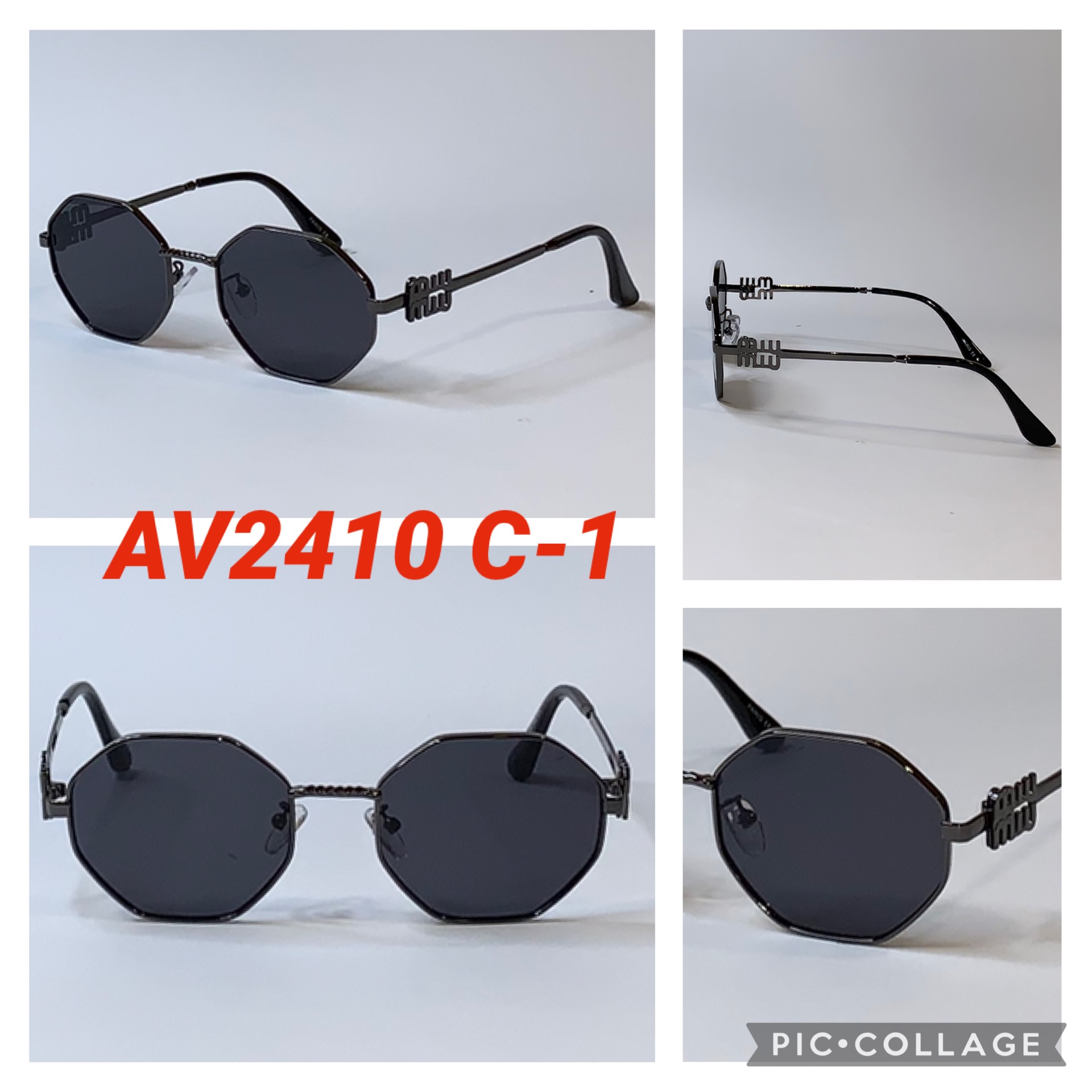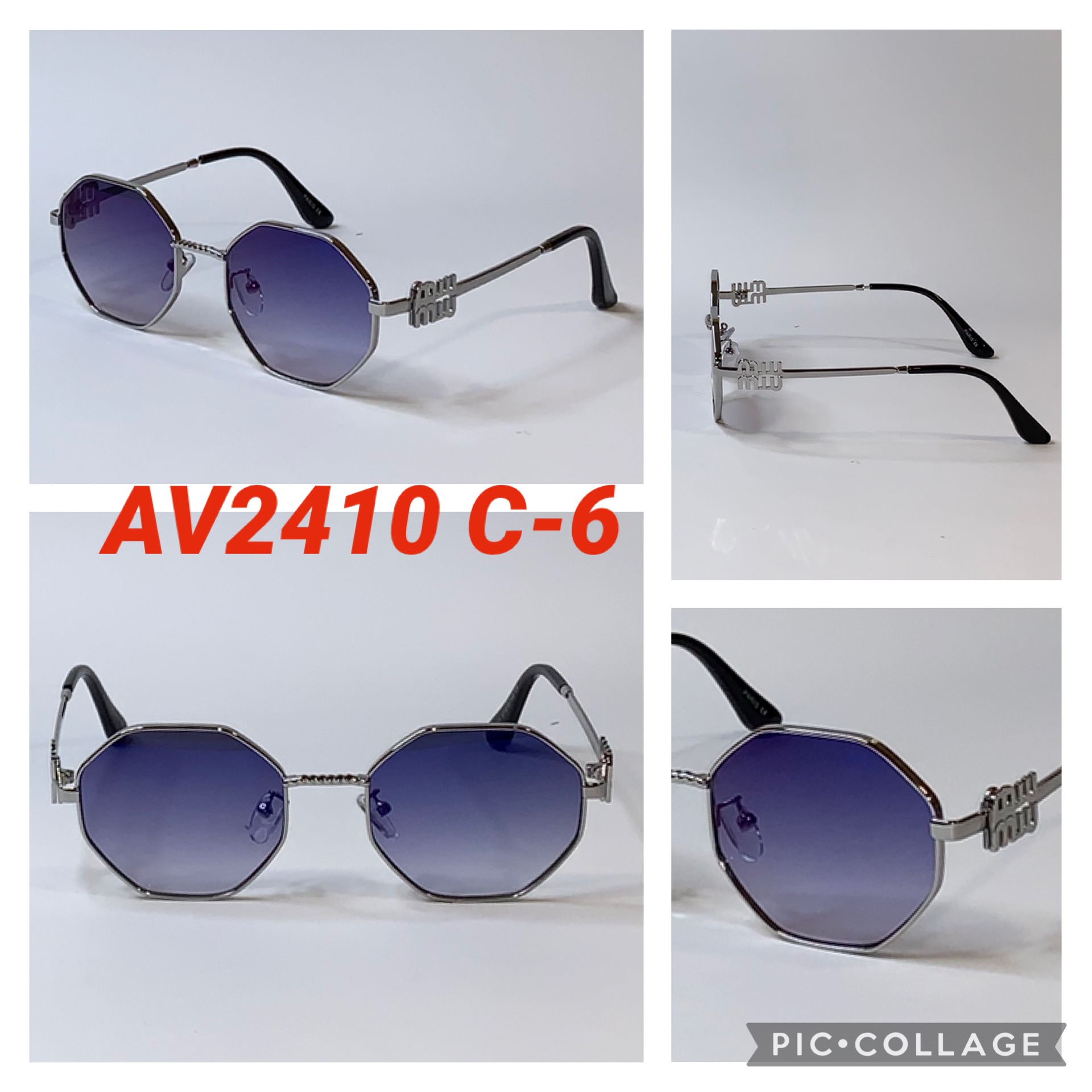 Шестиугольные Брендовые солнцезащитные очки Miu Miu в металлической оправе AV2410P