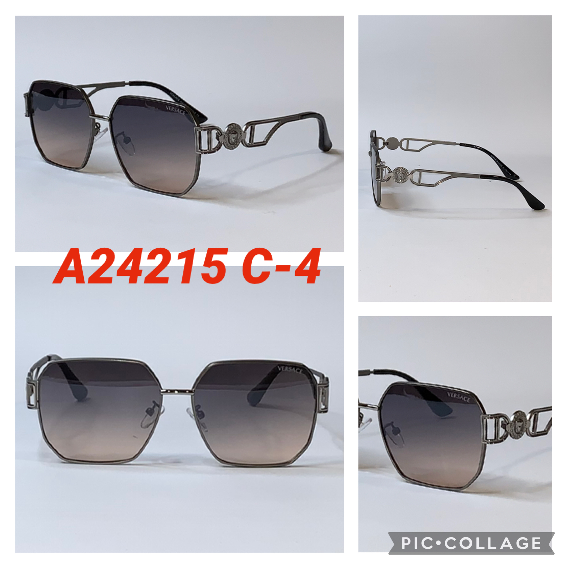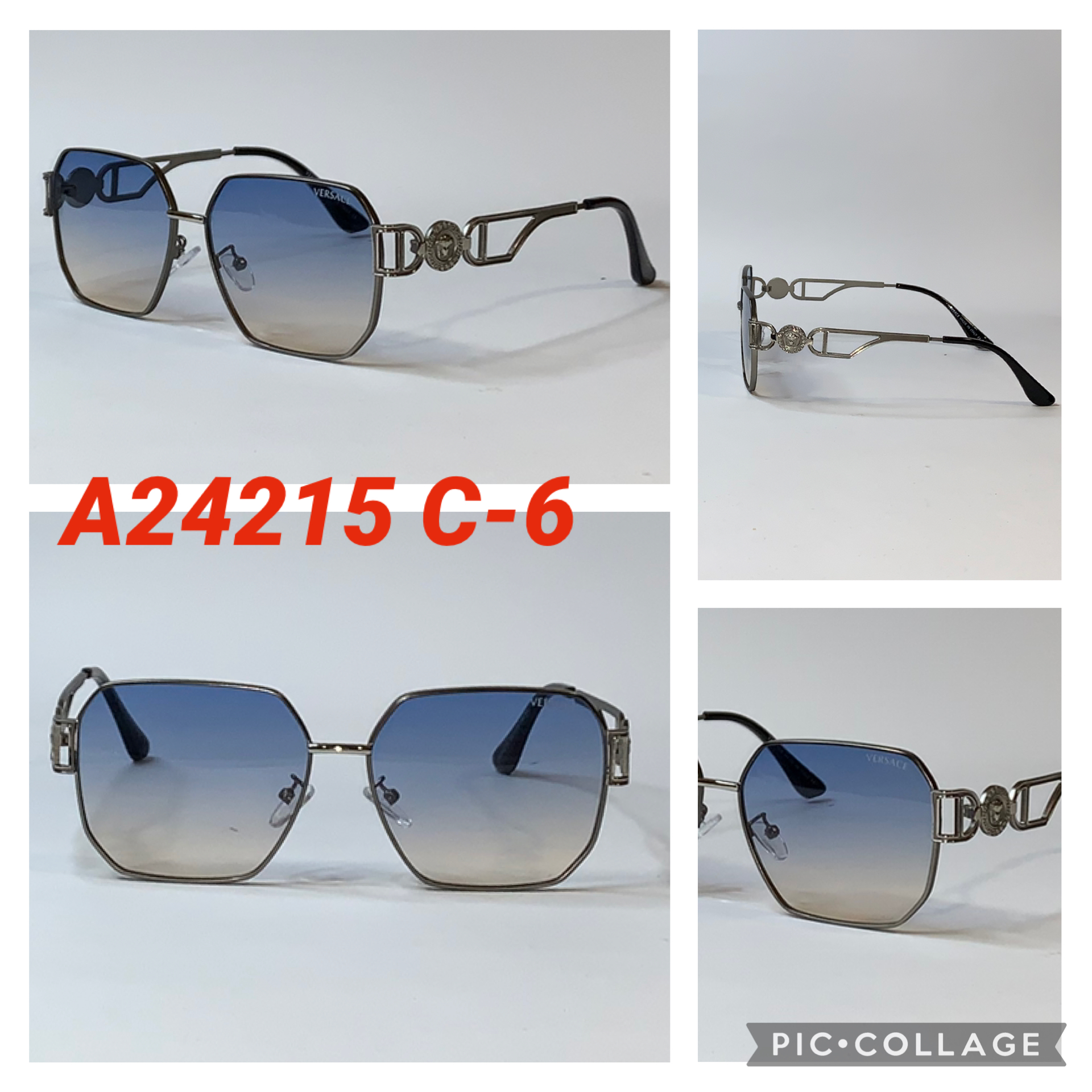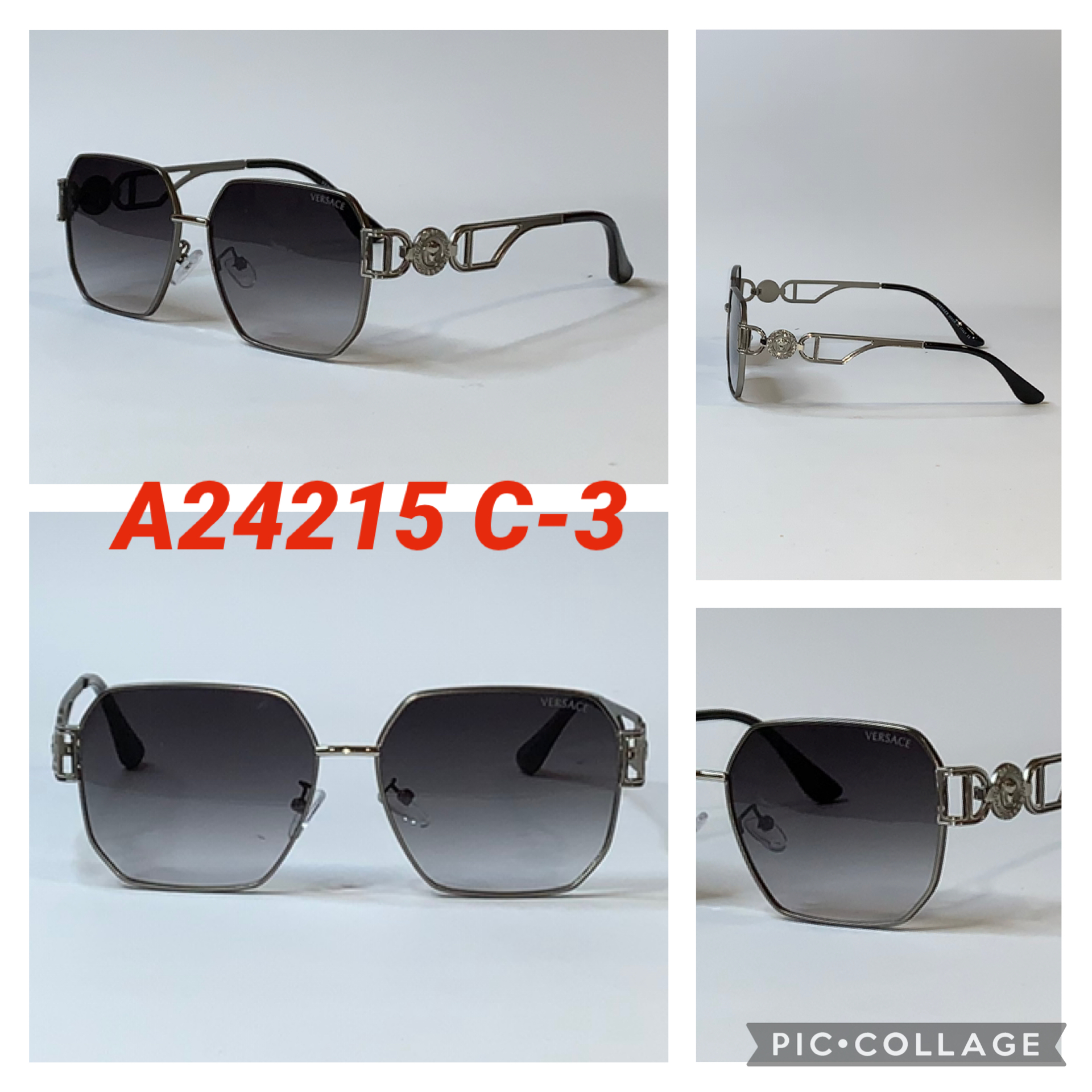 Шестиугольные Брендовые солнцезащитные очки Versace в металлической оправе A24215