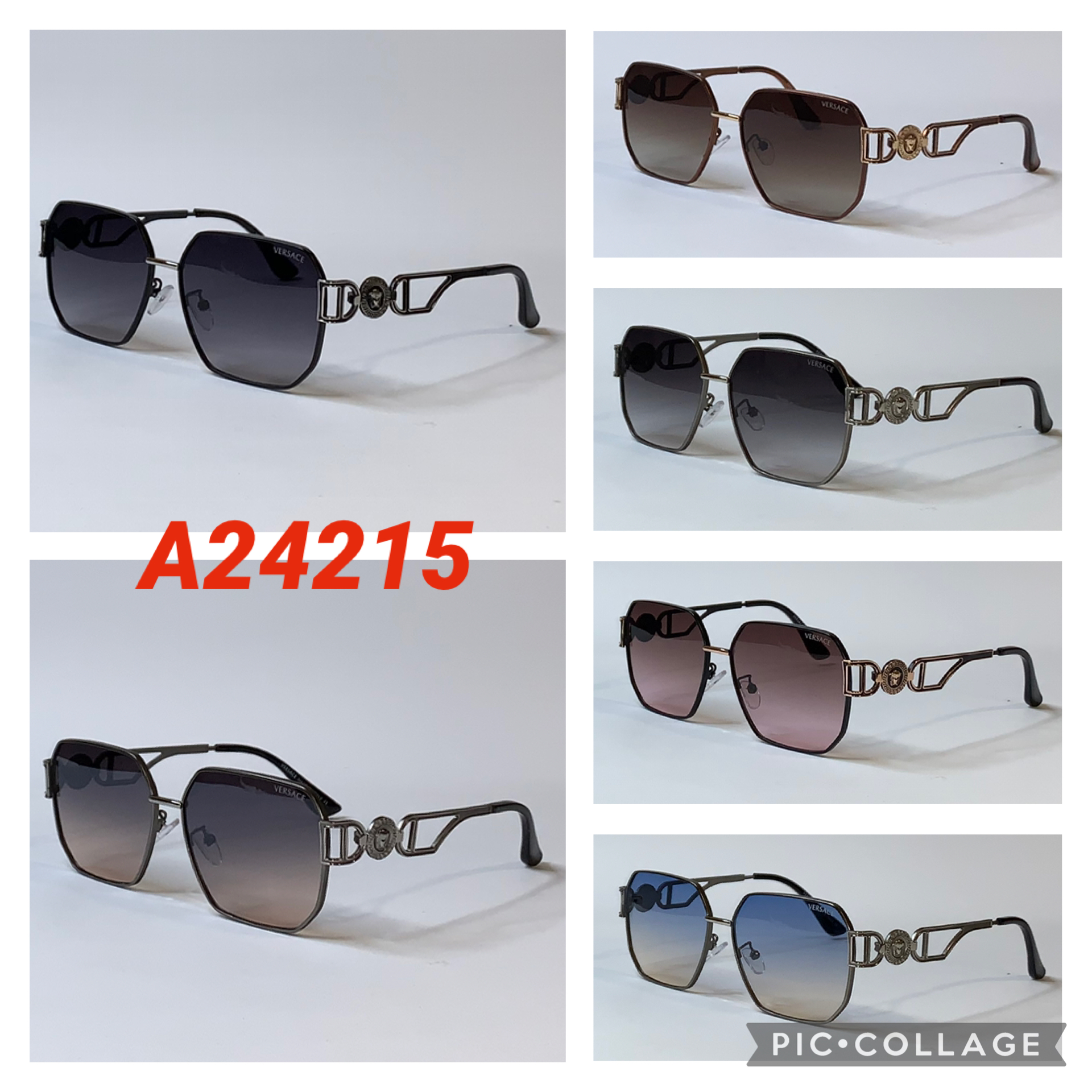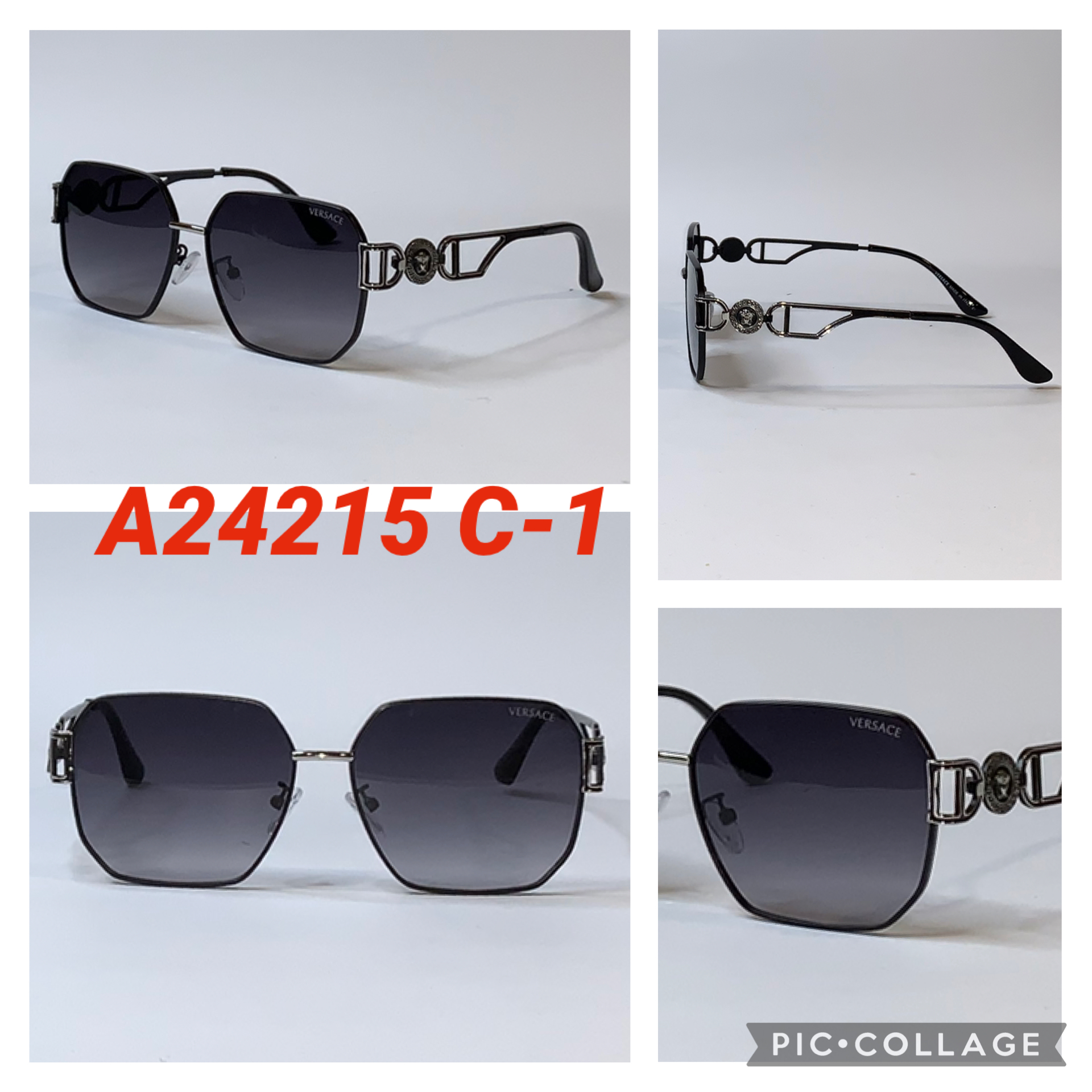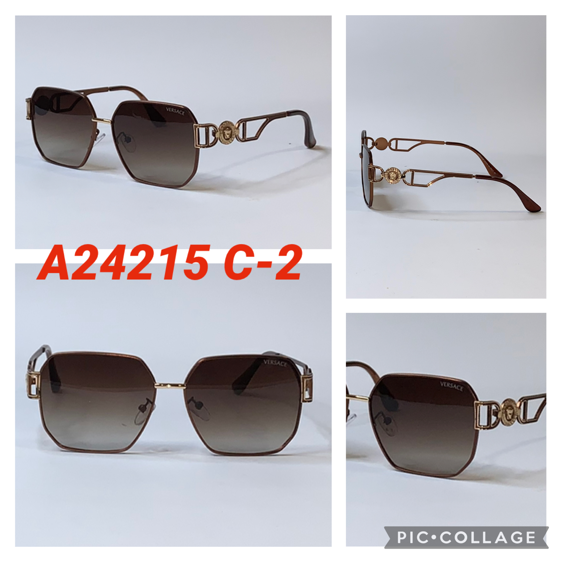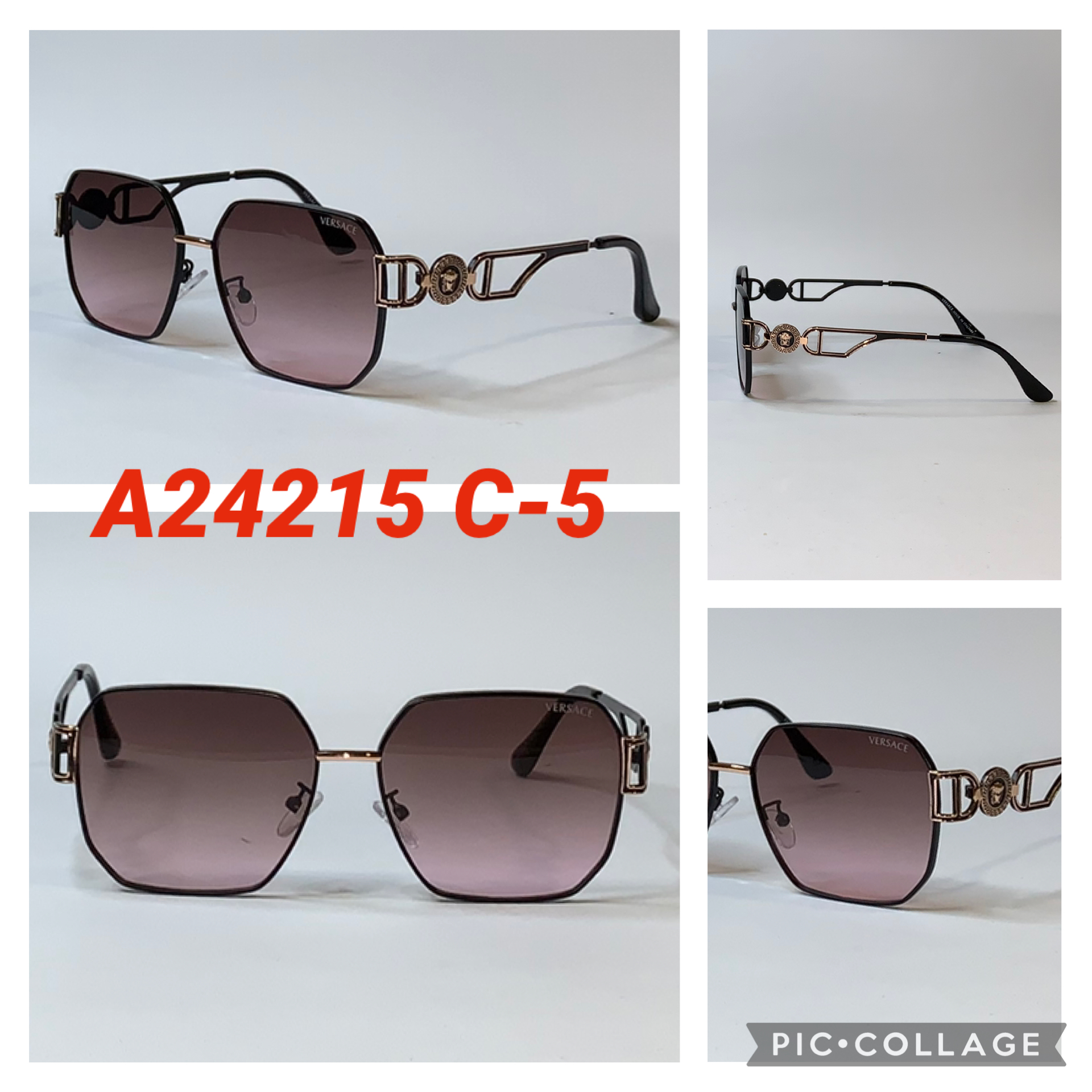 Шестиугольные Брендовые солнцезащитные очки Versace в металлической оправе A24215